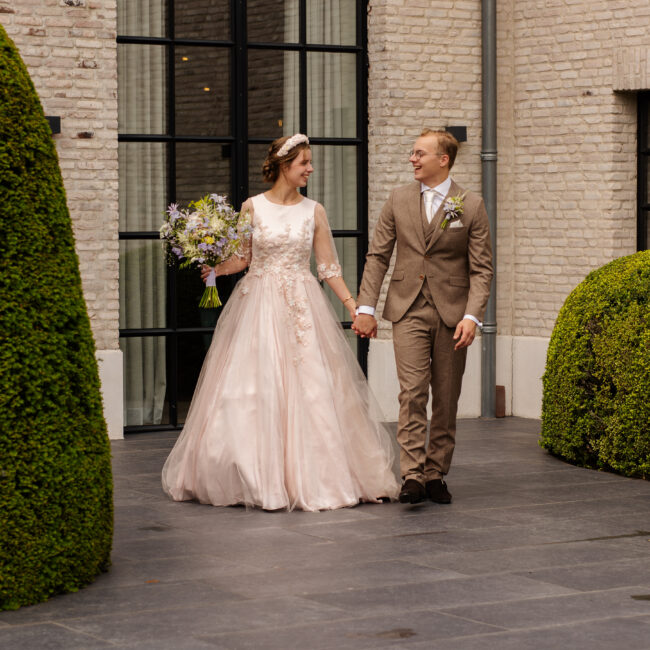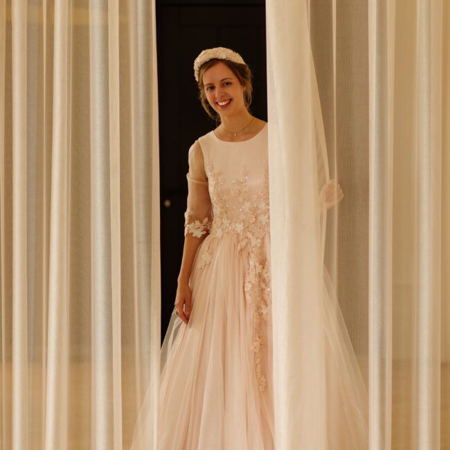 Doordat ik alleen op afspraak werk, hebben we volledig samen de tijd om jouw bruidsjurk uit te kiezen. En natuurlijk kun je gezellig iemand meenemen! Het advies is om niet meer dan 2 á 3 mensen mee te nemen. Vooral bij de eerste afspraak kun je het beste iemand meenemen die dicht bij jou staat, en eerlijk zijn of haar mening kan geven, maar ook zeker jouw wensen respecteert.